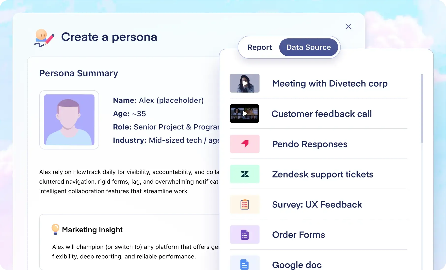 Add all your raw project files — interviews, surveys, customer feedback — to Marvin.
