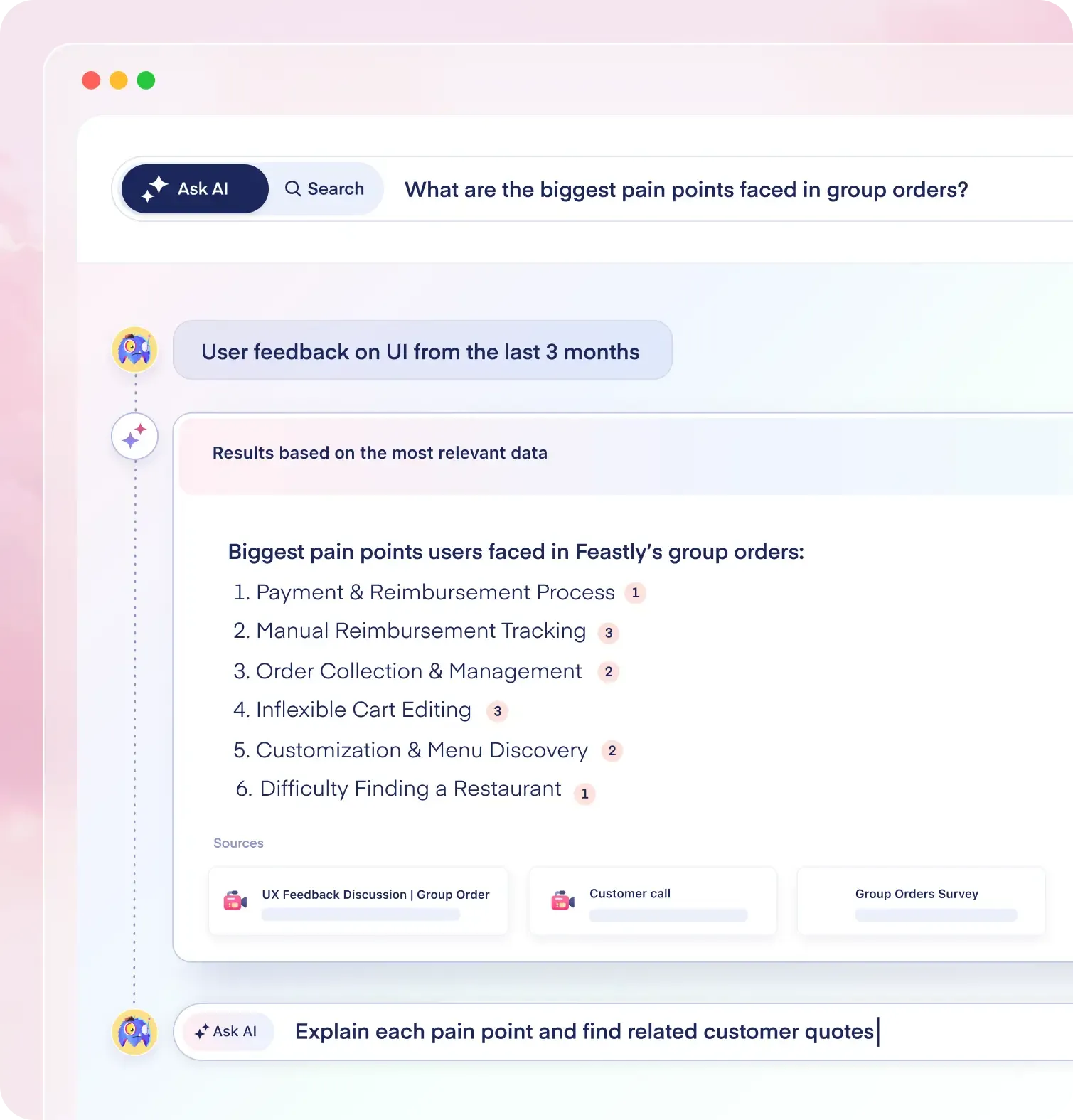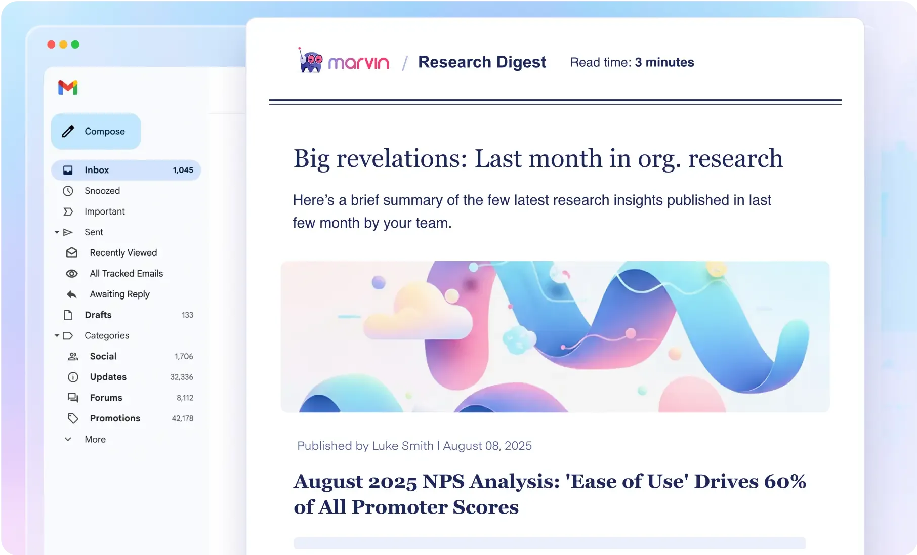 Marvin automatically centralizes all your research and customer feedback in one searchable hub.